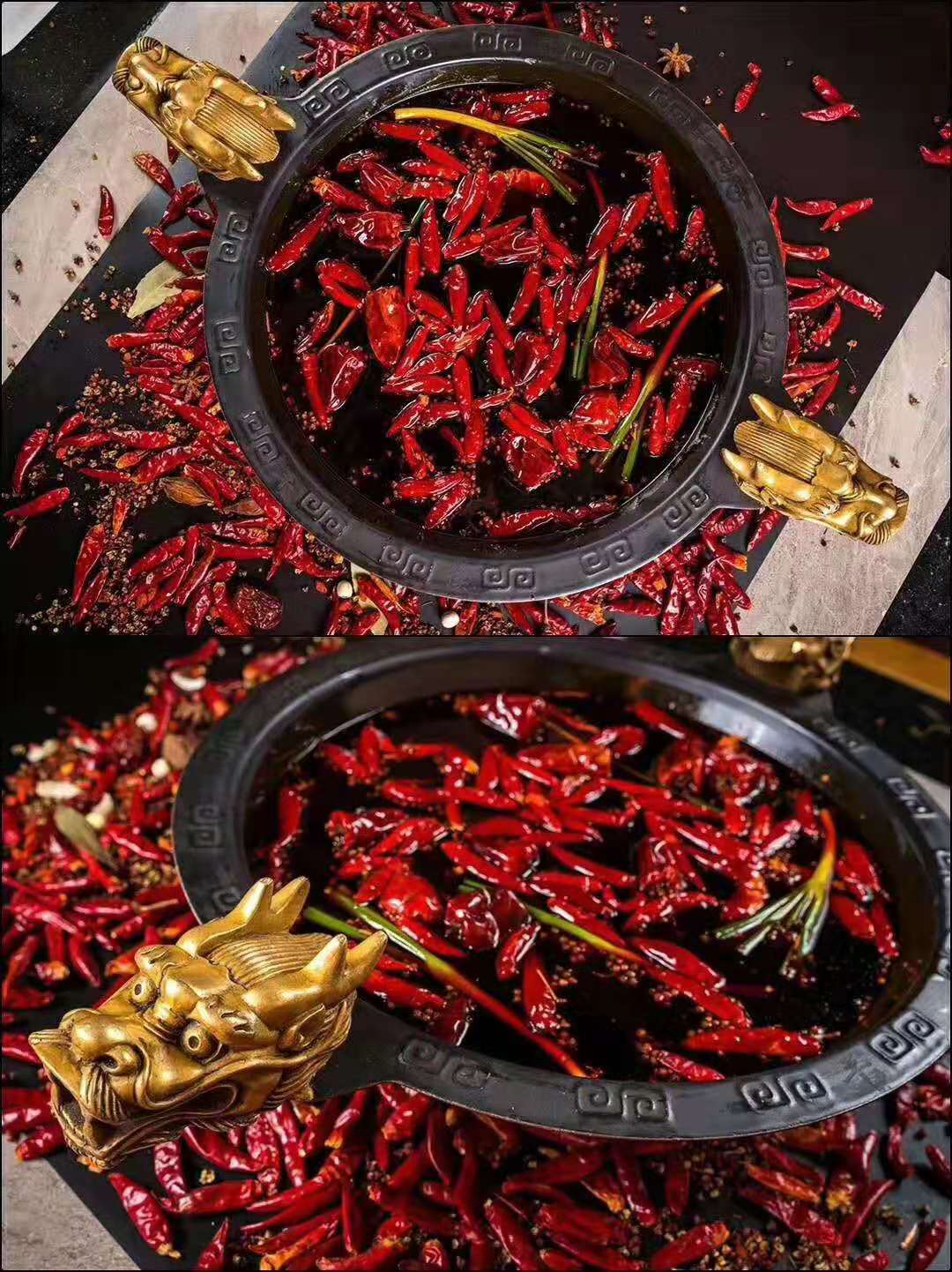 而成都火鍋則香味更加突出,在辣椒和花椒同時存在的情況下,使用了更多的香料,在綜合和麻辣味道的同時,突出了香料的香味,而成都火鍋在牛油的使用上面也有所差異,會有色拉油和菜籽油的出現(xiàn),讓整體的感受少一些牛油帶來的葷腥的味道,香味更加的容易出來。