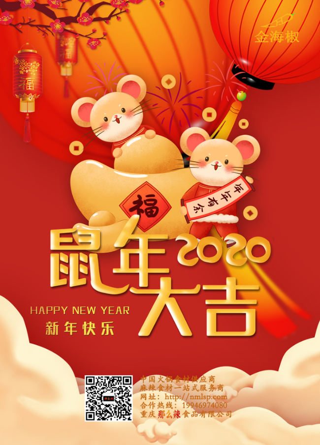 那么辣食品祝?;锇閭冃麓宏H家快樂,鼠年大吉!